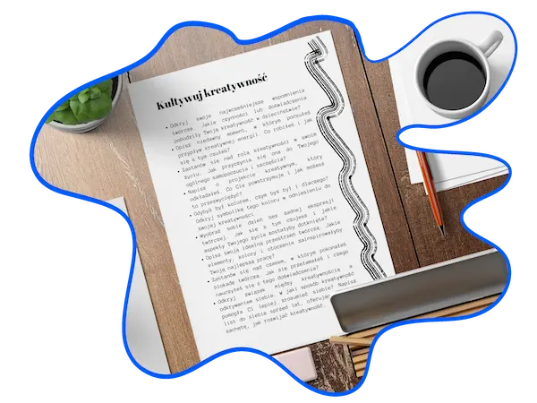 Poza listem dostaniesz ode mnie tematyczne pomysły na wpisy w pamiętniku (journaling prompts). Kartę w formacie A5 możesz wkleić bezpośrednio do pamiętnika albo wyciąć z niej konkretne pomysły, które do Ciebie przemawiają.